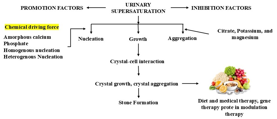The cause of crystal growth in the kidneys is urinary supersaturation. Supersaturation is unquestionably necessary for stone synthesis since it’s important for the initiation of the development of crystalline particles [25].