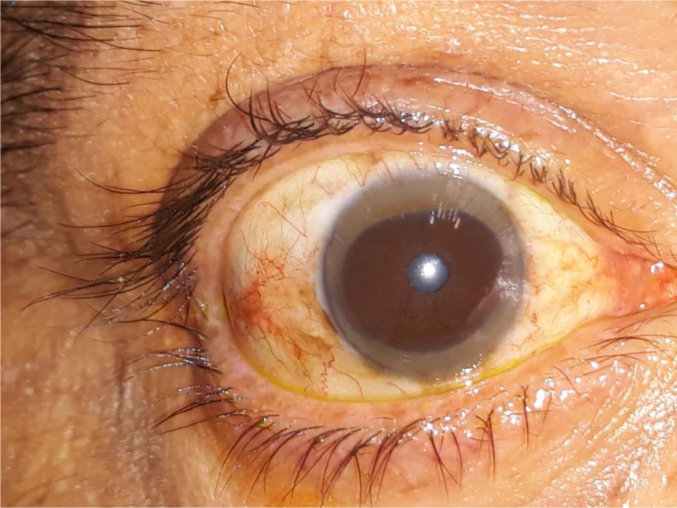 Figure 1: Ophthalmic examination shows presence of Kayser–Fleischer (K-F) rings.