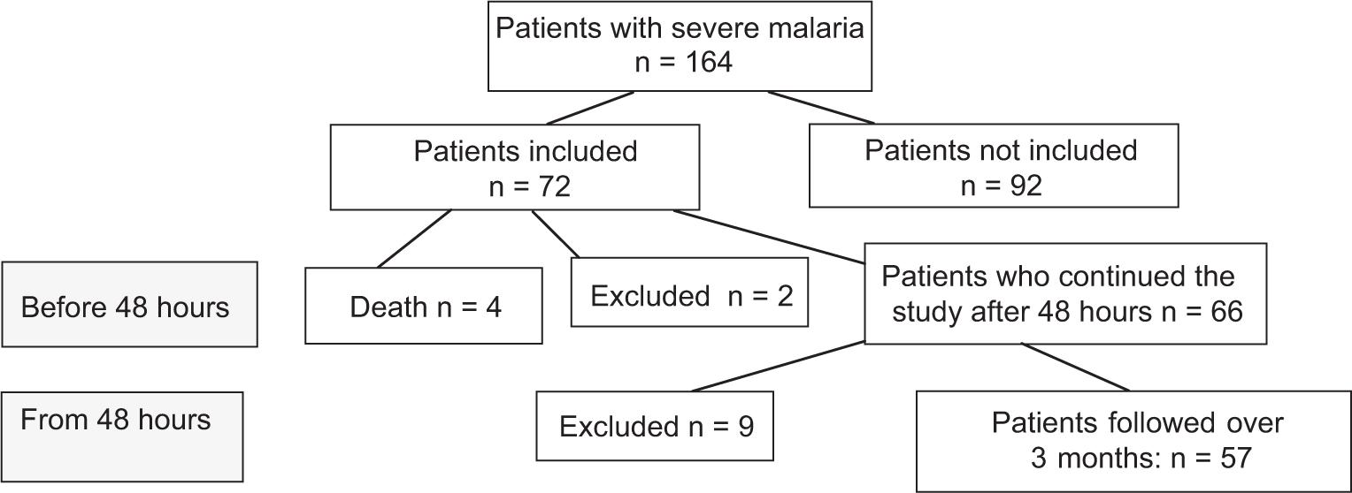 During the study period, 164 children hospitalized for severe malaria were included in our study (Figure 1).